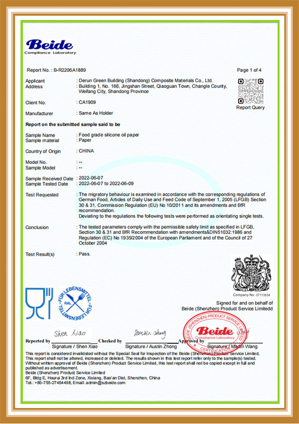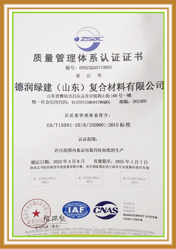 德潤綠建(山東)復合材料有限公司位于山東省昌樂縣德潤綠建食品包裝產業園內,園區占地810畝,總投資20億。公司擁有大型涂布設備,分切,開片和復卷機共數20余臺。新上兩條自動化生產涂布線,年產量20000余噸。主要生產硅油紙大卷、硅油紙大平張、烘焙紙、烤肉紙、蒸籠紙、空氣炸鍋紙、奶茶防漏紙等產品,公司還設立了研發中心和實驗室,具備專有技術和關鍵環節的自主知識產權,技術實力優良,生產經驗豐富,有強大的新產品開發能力。